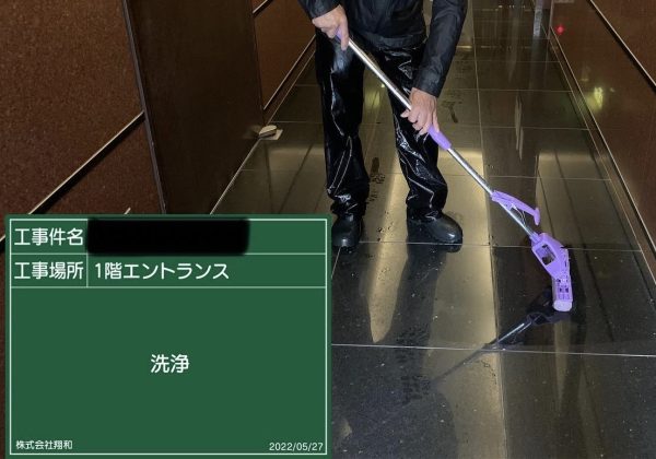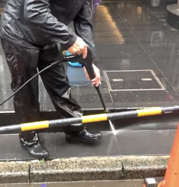 ①高圧洗浄で汚れを落とします。(周囲環境・汚れ具合で判断)