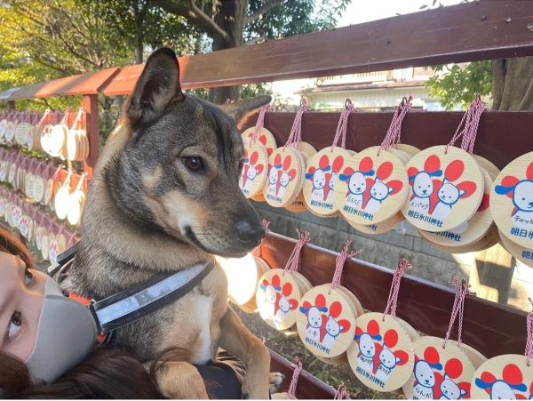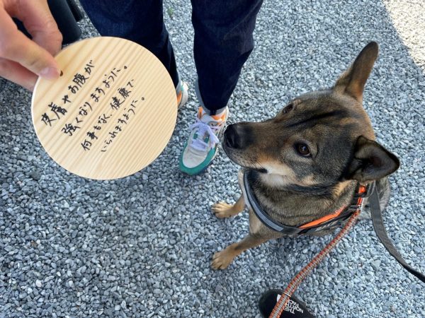 投稿者の愛犬は小さい時からお腹と肌が弱く、度々病院にかかっていたので、少しでも良くなるようにと絵馬に願いを込めてきました。