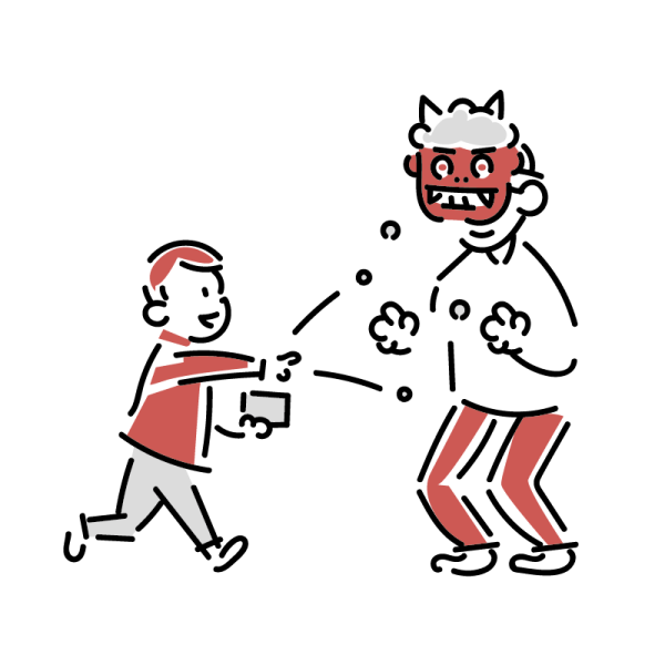 「鬼」と聞くと、桃太郎などの昔話に出てくる、角の生えた架空の生き物に豆をぶつけて退治するようなイメージですが、昔は病気や不幸といった災いを招くのが鬼だと考えられており、豆は鬼退治というよりも、邪気を払う目的でまいていたようです。